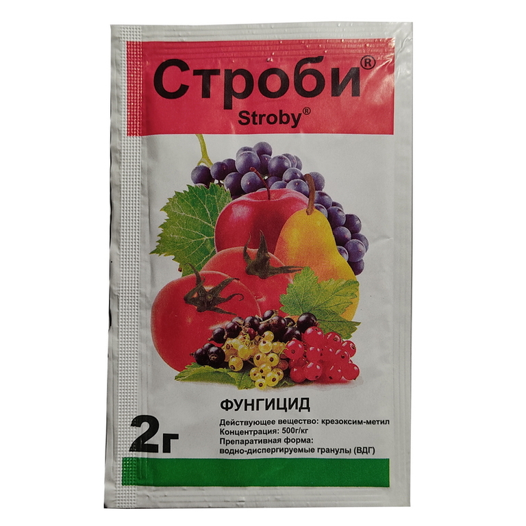 Строби - высокоэффективный фунгицид широкого спектра действия для борьбы с болезнями плодовых, овощных, декоративных культур и винограда Препарат применяется как лечащее так и профилактическое средство.