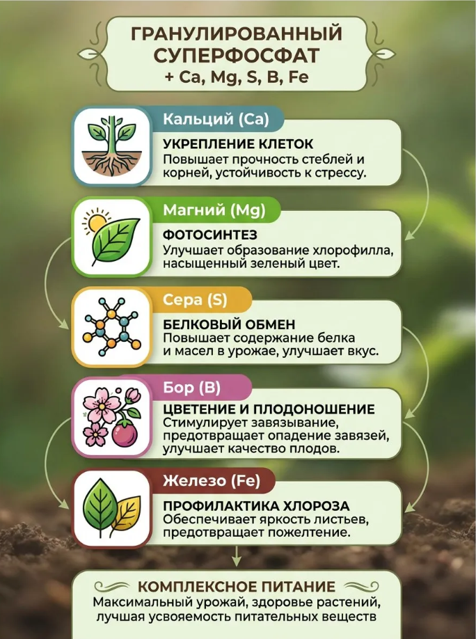 Описание Удобрение суперфосфат с микроэлементами 1 кг.: