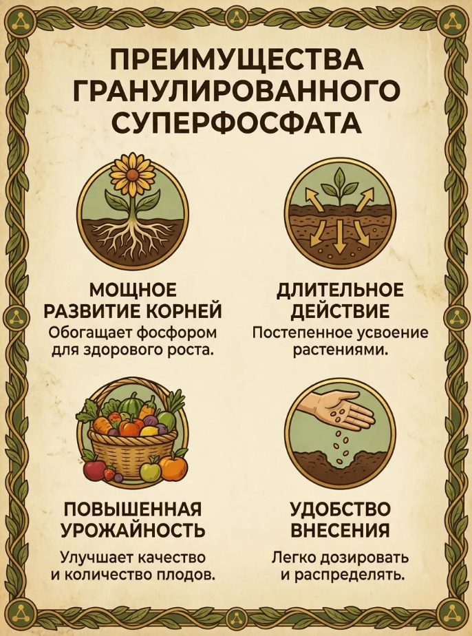 Универсальное азотно-фосфорное минеральное удобрение используется для различных почв, под все сельскохозяйственные культуры при различных способах внесения как самостоятельно, так и в смеси с другими удобрениями, может применяться в условиях защищенного грунта. Суперфосфат увеличивает урожай, улучшает его качество, повышает устойчивость растений к засухе и стимулирует корнеобразование. Наличие комплекса микроэлементов в составе удобрения обеспечивает сбалансированное питание и ускоряет рост растений.
